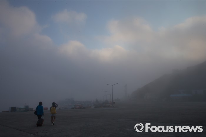 (여서도=포커스뉴스) 해무가 자욱한 전남 완도군 청산면 여서도에 한 관광객이 혹시나 하는 마음으로 선착장을 향하고 있으나, 이 날은 온종일 결항했다.