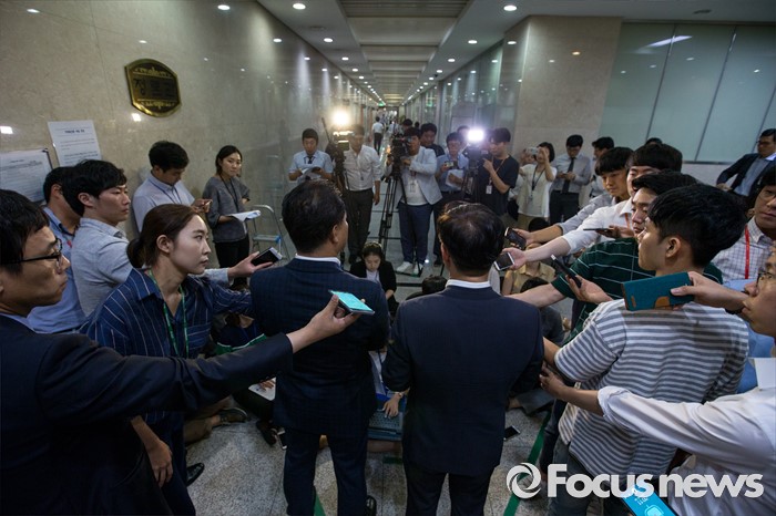 (서울=포커스뉴스) 박범계(오른쪽) 더불어민주당 의원과 이용주 국민의당 의원이 2일 오후 서울 여의도 국회에서 고위공직자 비리수사처 관련 경과 및 향후 일정에 대해 발표를 마친 뒤 취재진 질문에 답하고 있다.