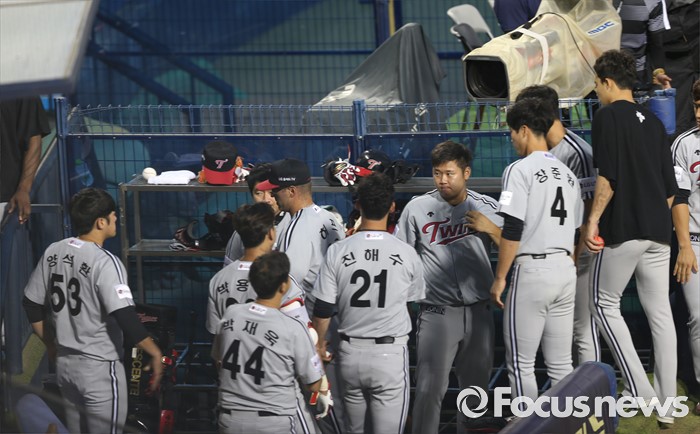 | △ 강판되는 허프, 무거운 분위기의 LG 더그아웃 |