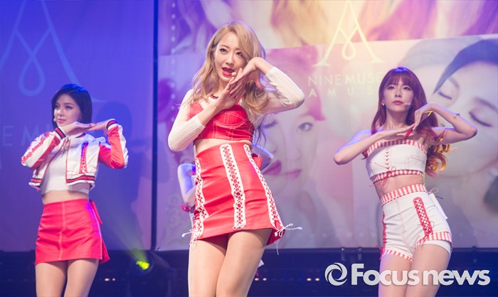 (서울=포커스뉴스) 4일 오전 서울 도봉구 플랫폼창동61에서 열린 걸그룹 나인뮤지스A의 싱글앨범 'MUSES DIARY' 발표 쇼케이스에 참석한 멤버들이 무대를 선보이고 있다.