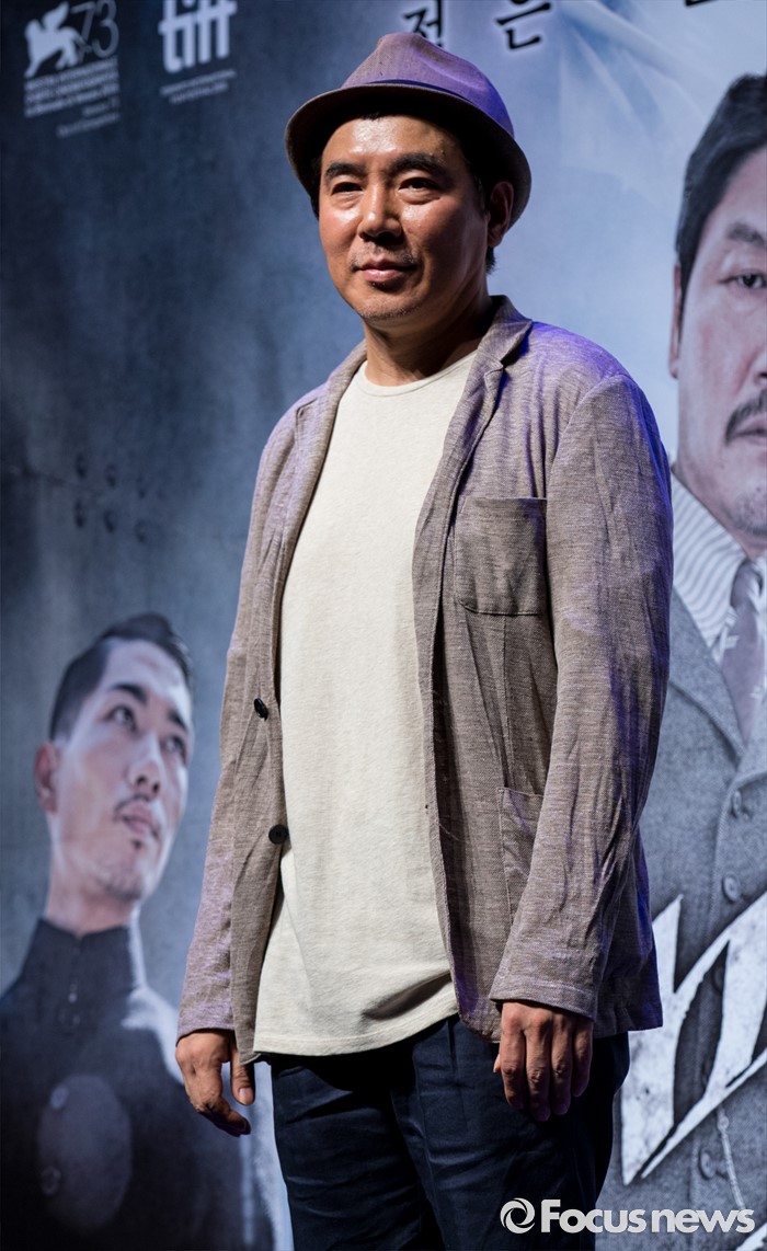 (서울=포커스뉴스) 김지운 감독이 4일 오전 서울 강남구 압구정 CGV에서 열린 영화 '밀정' 제작보고회에 참석해 포즈를 취하고 있다. 배우 송강호, 공유, 한지민, 엄태구, 신성록 등이 출연하는 영화 '밀정'은 일제 강점기 무장독립단체 의열단과 일본 경찰 간의 암투를 그린 작품으로 오는 9월 개봉 예정이다.