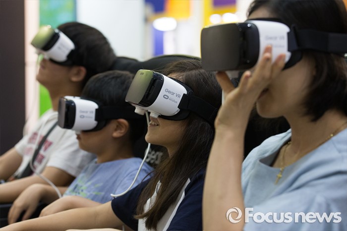 (서울=포커스뉴스) 4일 오후 서울 강남구 코엑스에서 열린 '제20회 대한민국 과학창의축전'을 찾은 시민들이 VR(가상현실) 체험을 하고 있다.