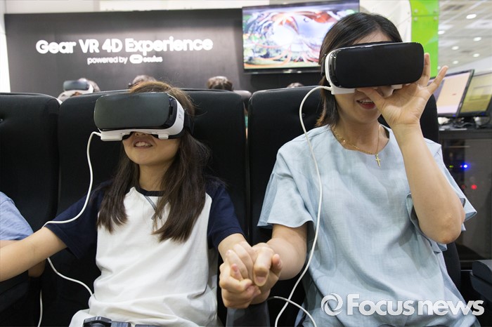 (서울=포커스뉴스) 4일 오후 서울 강남구 코엑스에서 열린 '제20회 대한민국 과학창의축전'을 찾은 시민들이 VR(가상현실) 체험을 하고 있다.