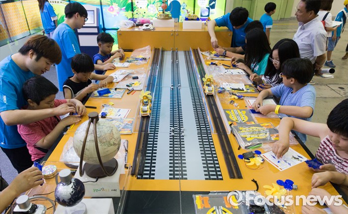 (서울=포커스뉴스) 4일 오전 서울 강남구 코엑스에서 열린 '제20회 대한민국 과학창의축전'을 찾은 시민들이 미니 자기부상열차를 제작하고 있다.
