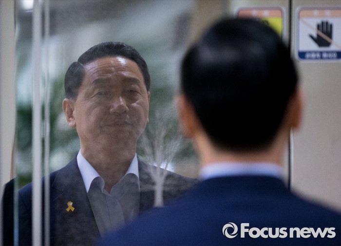 | △ 승강기 기다리는 김상곤 |