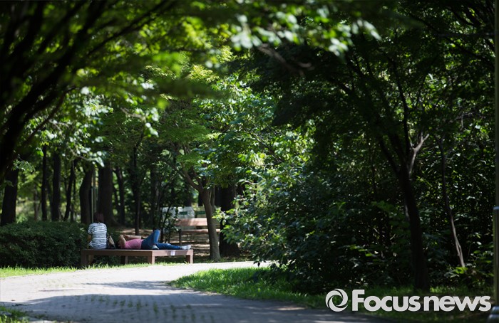 (서울=포커스뉴스) 서울에 첫 폭염경보가 내려진 4일 오후 서울 서초구 양재시민의숲을 찾은 시민들이 나무 그늘 아래서 휴식을 취하고 있다.