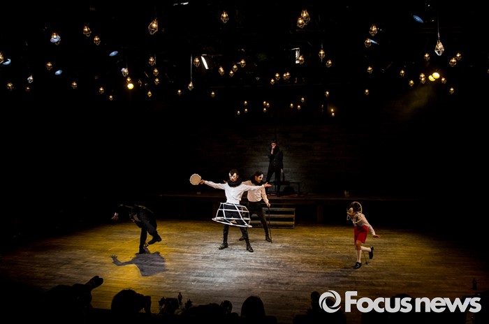 (서울=포커스뉴스) 4일 오후 서울 중구 충무아트센터에서 열린 연극 '햄릿-더 플레이' 언론시연회에 참석한 배우들이 열연하고 있다.