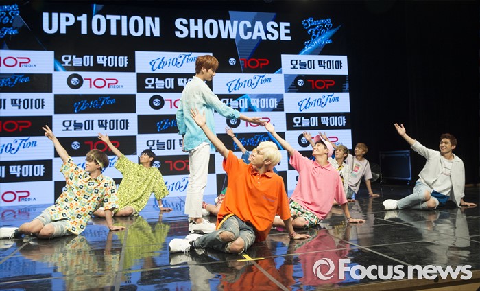 (서울=포커스뉴스) 4일 오후 서울 강남구 일지아트홀에서 열린 아이돌 그룹 업텐션의 미니앨범 'Summer go'발표 쇼케이스에 참석한 멤버들이 포토타임을 갖고 있다.