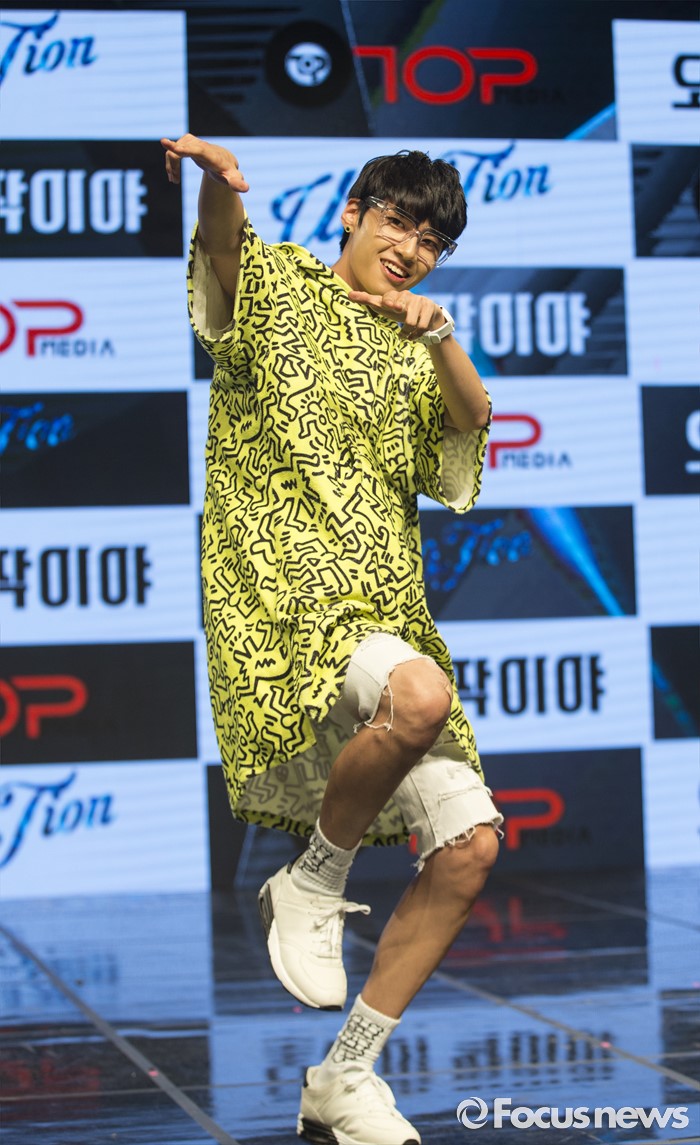 (서울=포커스뉴스) 4일 오후 서울 강남구 일지아트홀에서 열린 아이돌 그룹 업텐션의 미니앨범 'Summer go'발표 쇼케이스에 참석한 멤버 웨이가 포토타임을 갖고 있다.