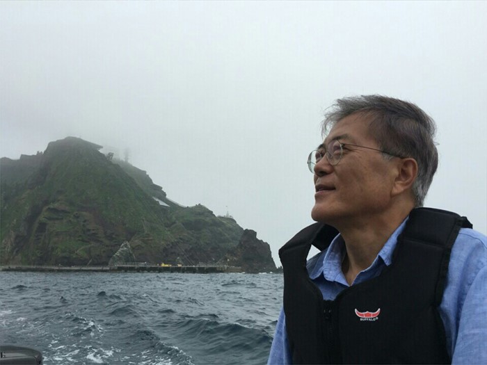 | △ 보트 타고 독도 둘러보는 문재인 |