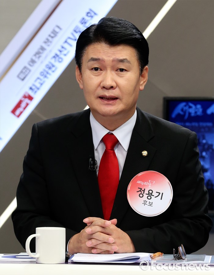 (서울=포커스뉴스) 4일 서울 중구 TV조선 스튜디오에서 열린 새누리당 최고위원 후보자 TV토론회에 참석한 정용기 의원이 발언하고 있다.
