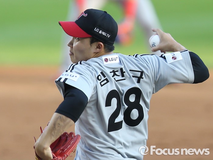 (서울=포커스뉴스) 4일 서울 잠실구장에서 열린 2016 프로야구 LG-두산 경기에서 1회말 LG 선발투수 임찬규가 투구하고 있다.