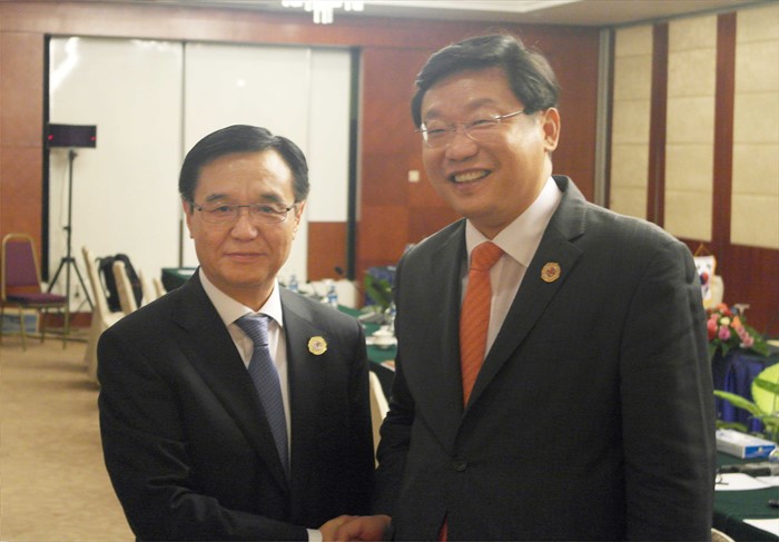 (서울=포커스뉴스) 주형환(오른쪽) 산업통상자원부 장관이 4일(현지시간) 라오스 비엔티안 돈 찬 호텔에서 가오 후청(高虎城) 중국 상무부 부장과 한-중국 양자회담을 갖기 앞서 악수를 하고 있다. <사진제공=산업통상자원부>