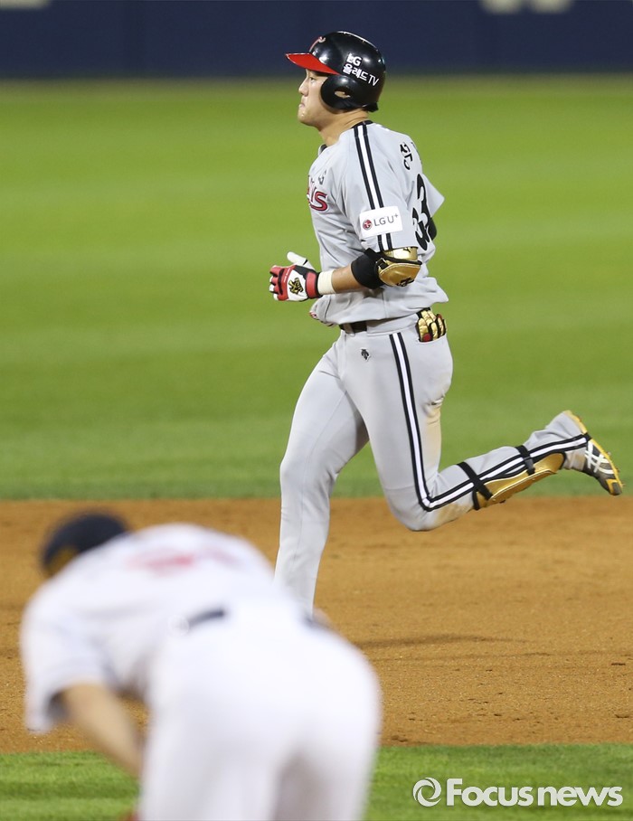 (서울=포커스뉴스) 4일 서울 잠실구장에서 열린 2016 프로야구 LG-두산 경기 8회초 1사후 LG 양석환이 중월 솔로 홈런을 치고 그라운드를 달리고 있다.