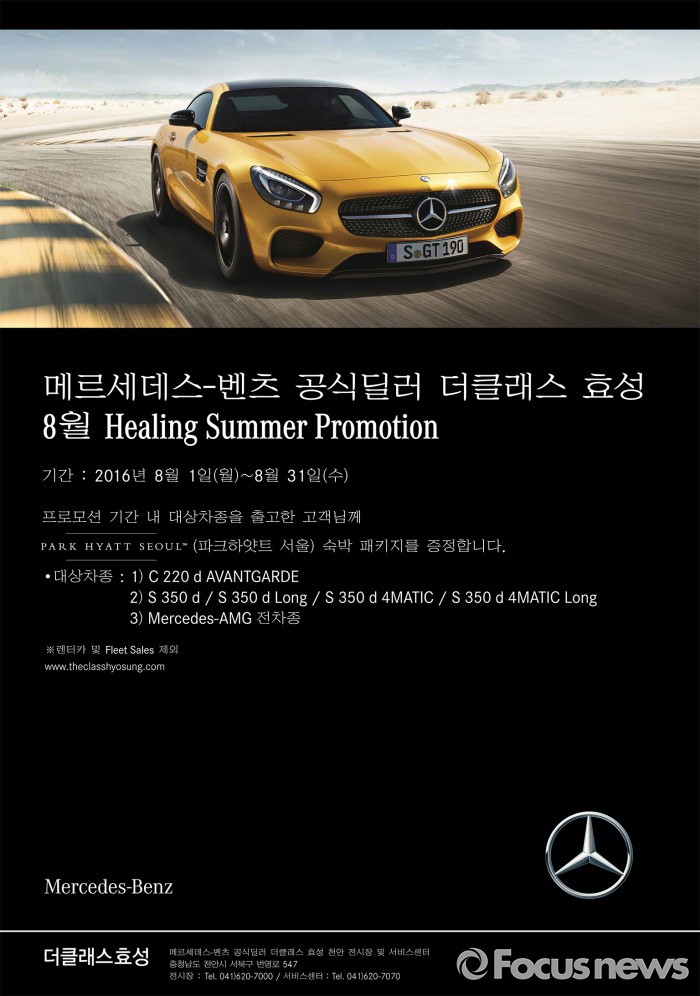 (서울=포커스뉴스) 메르세데스-벤츠 공식 딜러 더클래스 효성은 8월 한 달 간 '힐링 썸머' 프로모션을 전개한다고 5일 밝혔다.