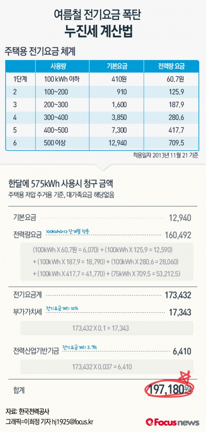 | △ [그래픽] 여름철 전기요금 폭탄 누진세 계산법 |