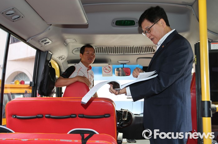 (세종=포커스뉴스) 정진엽 보건복지부 장관이 5일 오전 세종시 금남면 금남어린이집을 방문, 어린이통학차량 안전 점검을 하고 있다.