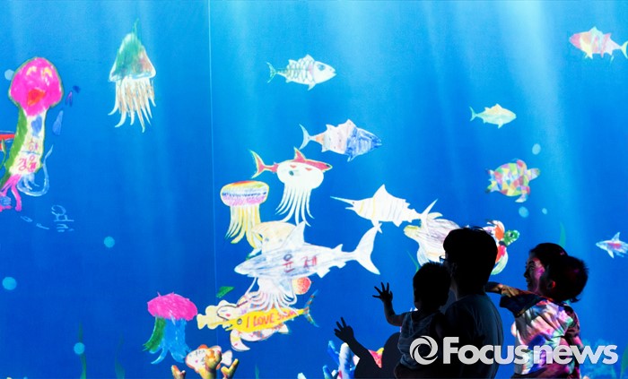(서울=포커스뉴스) 5일 오후 서울 송파구 잠실 롯데월드 내 마련된 '팀랩월드' 상설전시장을 찾은 관람객들이 화려한 디지털아트를 체험하고 있다.
