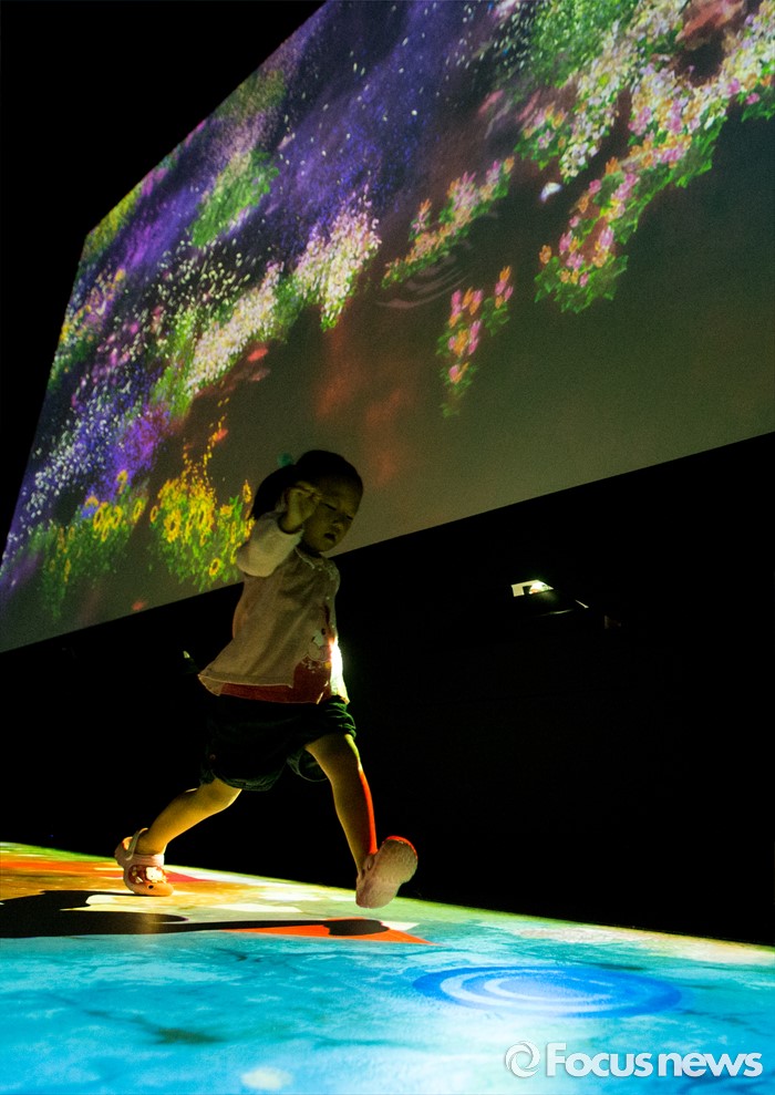 (서울=포커스뉴스) 5일 오후 서울 송파구 잠실 롯데월드 내 마련된 '팀랩월드' 상설전시장을 찾은 어린이가 화려한 디지털아트를 체험하고 있다.