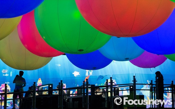 (서울=포커스뉴스) 5일 오후 서울 송파구 잠실 롯데월드 내 마련된 '팀랩월드' 상설전시장을 찾은 관람객들이 화려한 디지털아트를 체험하고 있다.