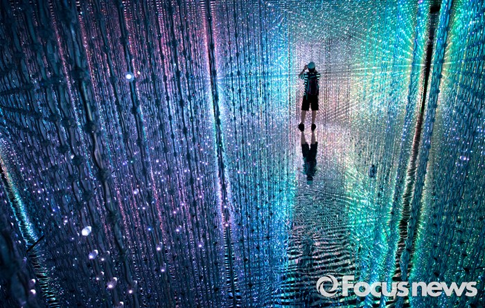 (서울=포커스뉴스) 5일 오후 서울 송파구 잠실 롯데월드 내 마련된 '팀랩월드' 상설전시장을 찾은 관람객이 화려한 디지털아트를 체험하고 있다.
