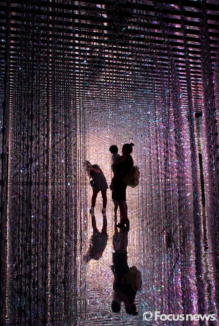 (서울=포커스뉴스) 5일 오후 서울 송파구 잠실 롯데월드 내 마련된 '팀랩월드' 상설전시장을 찾은 관람객들이 화려한 디지털아트를 체험하고 있다.