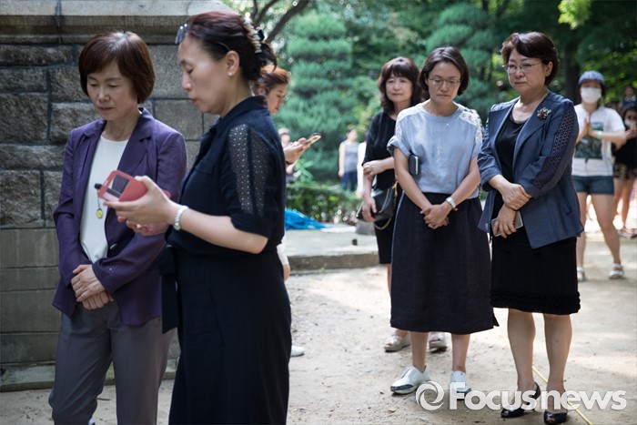 (서울=포커스뉴스) 최경희(왼쪽) 이화여대 총장이 5일 오후 서울 서대문구 이화여대 본관을 점거농성 중인 학생들과 대화 하기 위해 본관 앞을 서성이고 있다. 이날 최경희 이화여대 총장은 대학 본관 점거농성 중 교수·교직원 감금 혐의를 받고 있는 학생들의 처벌을 원치 않는다며 탄원서를 경찰에 제출했고 농성 중인 이화여대 학생들은 “이중적 행동”이라며 최 총장의 사퇴를 거듭 촉구했다.