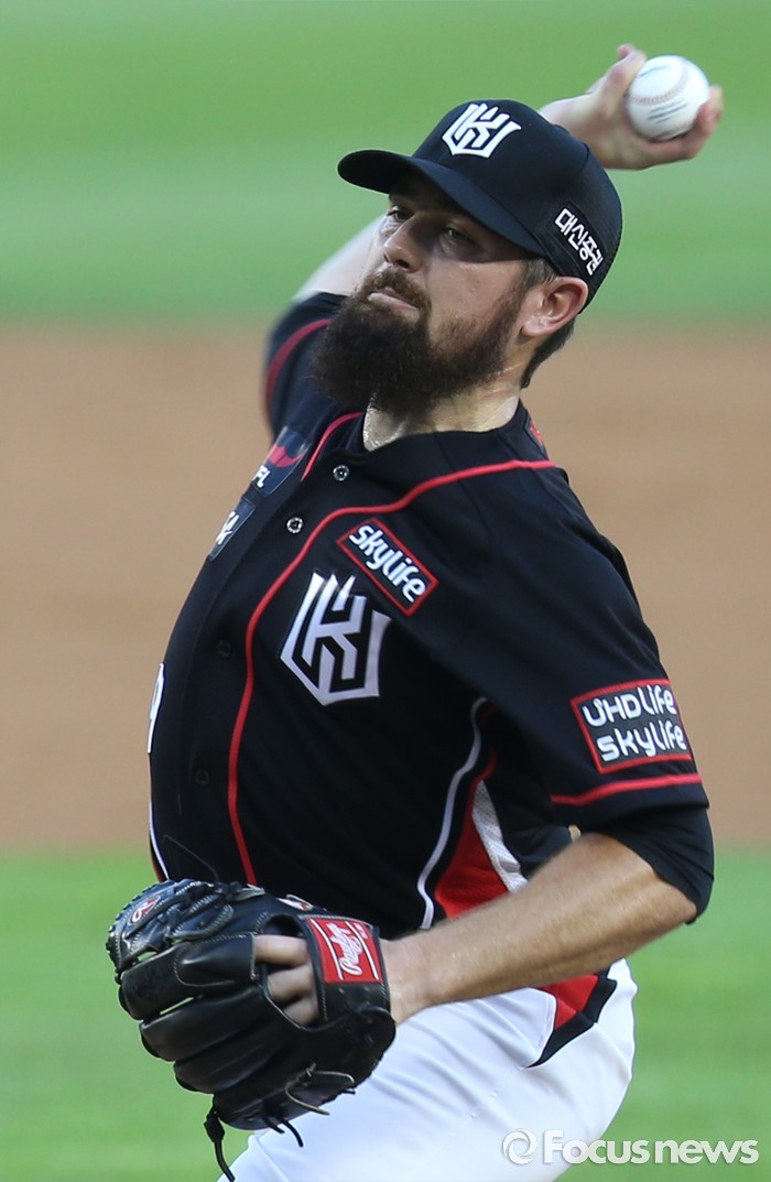 (서울=포커스뉴스) 5일 서울 잠실구장에서 열린 2016 프로야구 kt-LG 경기에서 1회말 kt 선발투수 로위가 투구하고 있다.