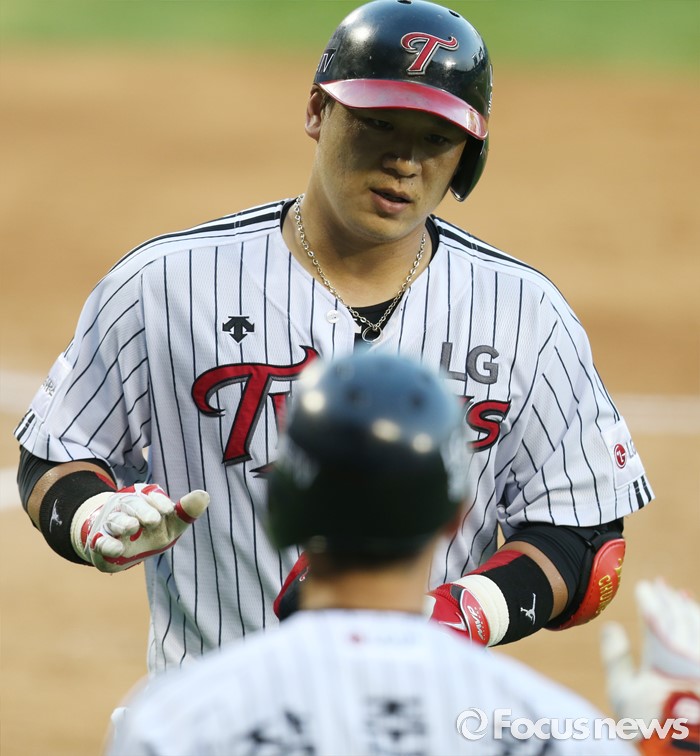 (서울=포커스뉴스) 5일 서울 잠실구장에서 열린 2016 프로야구 kt-LG 경기 2회말 LG 선두타자로 나온 정상호가 좌월 솔로 홈런을 치고 홈인하고 있다.