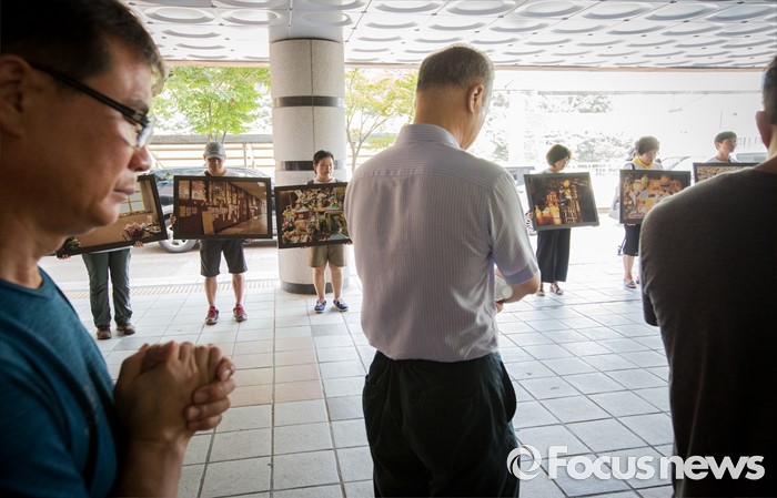 (안산=포커스뉴스) 세월호참사 이후 새로운 교육을 위한 사회적 합의에 따라 6일 오후 경기도 안산시 단원고등학교에서 교실 이전을 위한 준비 작업이 진행되고 있다. 단원고 희생자 유가족과 참석자들이 교실 이전 준비 작업 과정 중 하나인 '참회를 위한 기도' 시간을 갖고 있다.