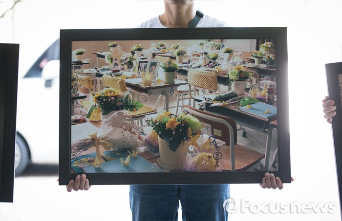 (안산=포커스뉴스) 세월호참사 이후 새로운 교육을 위한 사회적 합의에 따라 6일 오후 경기도 안산시 단원고등학교에서 교실 이전을 위한 준비 작업이 진행되고 있다. 교실 이전 준비를 돕기 위해 단원고에 온 참석자들이 교실 및 교무실을 찍은 기록물들을 단원고에서 분향소로 옮겨 가고 있다.