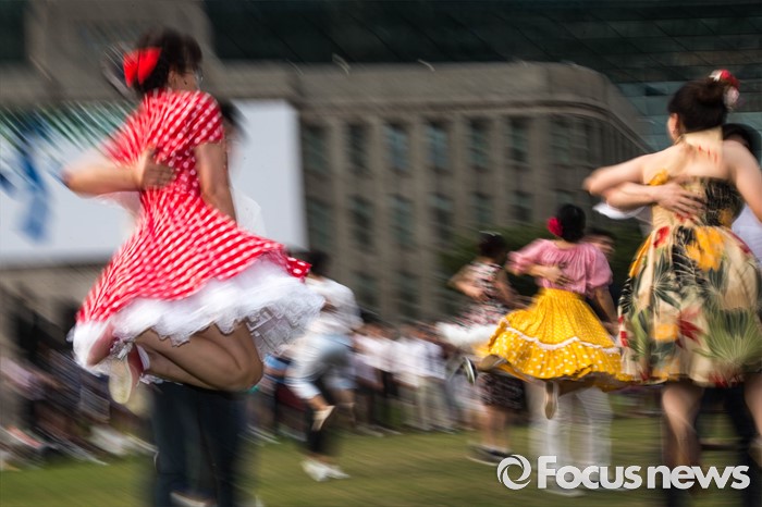 (서울=포커스뉴스) 6일 오후 서울 중구 시청 앞 광장에서 열린 '서울 스윙댄스 페스티벌'에서 청년문화예술단체 딴따라땐스홀 회원들이 음악에 맞춰 스윙댄스를 추고 있다.