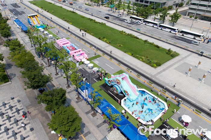 △ 세종대로에 설치된 물놀이장