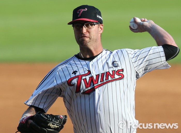 (서울=포커스뉴스) 5일 서울 잠실구장에서 열린 2016 프로야구 kt-LG 경기에서 1회초 LG 선발투수 허프가 투구하고 있다.
