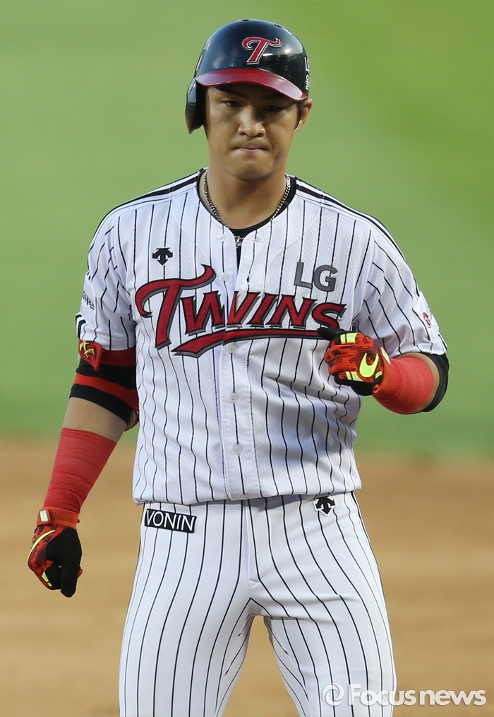 (서울=포커스뉴스) 5일 서울 잠실구장에서 열린 2016 프로야구 kt-LG 경기 3회말 2사 만루에서 LG 오지환이 2타점 우전 안타를 치고 1루에서 기뻐하고 있다.