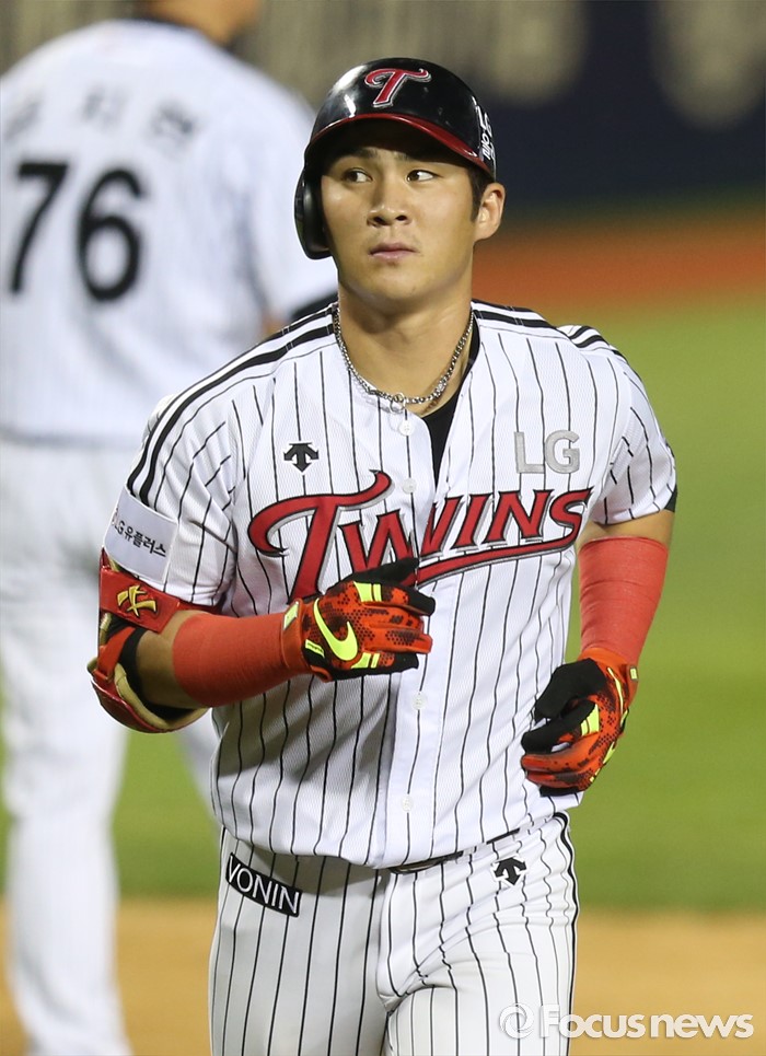 (서울=포커스뉴스) 5일 서울 잠실구장에서 열린 2016 프로야구 kt-LG 경기 7회말 2사후 LG 오지환이 우월 솔로 홈런을 치고 홈인하고 있다.