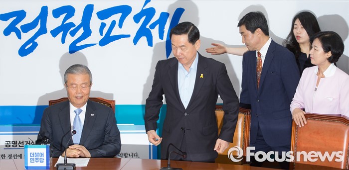 (서울=포커스뉴스) 8일 오전 서울 여의도 국회에서 열린 더불어민주당 당대표 및 부문별 최고위원 선출을 위한 공명선거 협약식에 김종인(왼쪽부터) 비대위 대표, 김상곤, 이종걸, 추미애 당대표 후보가 참석하고 있다.