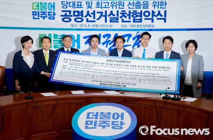 | △ 더민주 부문별 최고위원 후보자 공명선거 협약 |