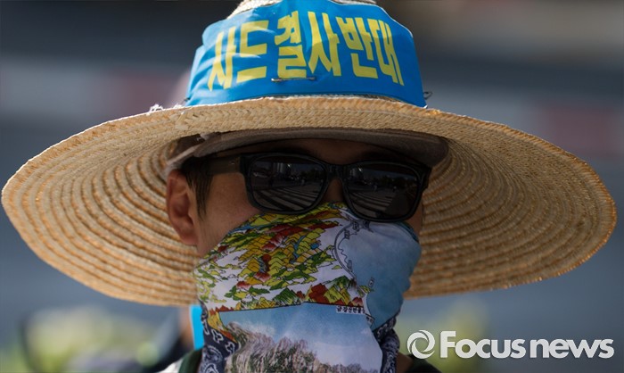 (서울=포커스뉴스) 8일 오전 서울 용산구 국방부 앞에서 사드배치철회 성주투쟁위원회 소속 성주군민이 사드 성주배치 철회를 촉구하는 1인 시위를 하고 있다.