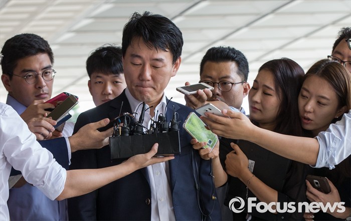 (서울=포커스뉴스) 사기·횡령·배임 등의 혐의로 피소된 이장석 넥센 히어로즈 대표가 8일 오전 서울중앙지검으로 소환조사를 받기 위해 출석하고 있다.