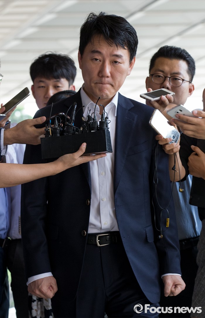 (서울=포커스뉴스) 사기·횡령·배임 등의 혐의로 피소된 이장석 넥센 히어로즈 대표가 8일 오전 서울중앙지검으로 소환조사를 받기 위해 출석하고 있다.