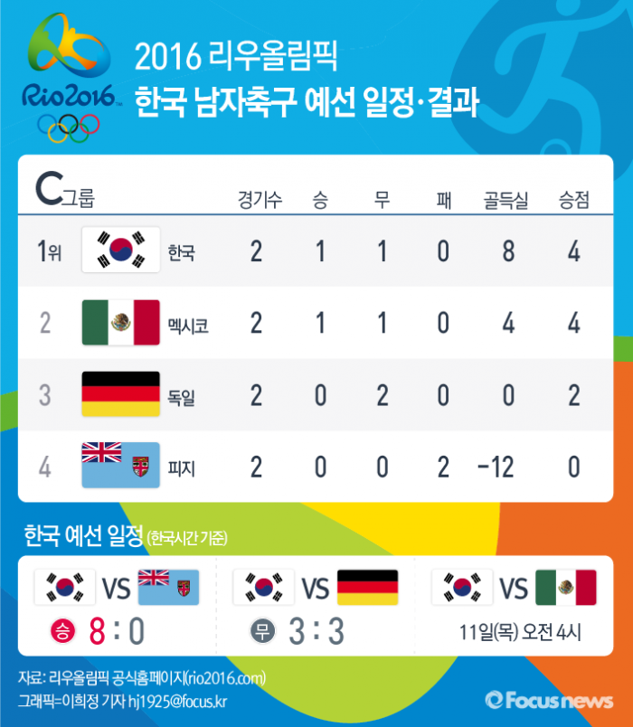| △ [그래픽] 2016 리우올림픽 한국 남자축구 예선 일정·결과 |