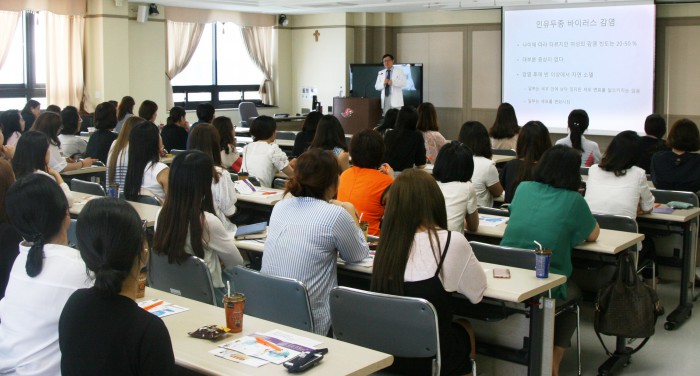 이번 건강강좌에선 원내 환자 및 보호자, 여의도 푸르니어린이집 보육교사 및 직원 70여 명이 참석했으며, 한림대학교한강성심병원 산부인과 박원일 교수가 강의를 진행했다.