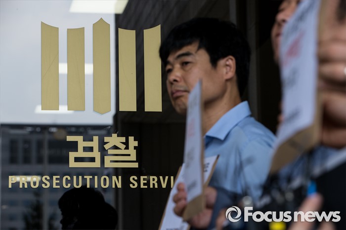(서울=포커스뉴스) 8일 오전 서울 서초구 서울중앙지방검찰청 앞에서 가습기살균제참사전국네트워크 회원들이 SK케미칼, 애경산업, 이마트에 대한 수사를 촉구하며 3개사 전·현직 최고위 임원들에 대한 고발장을 제출하기 전 취지에 대해 설명하고 있다.
