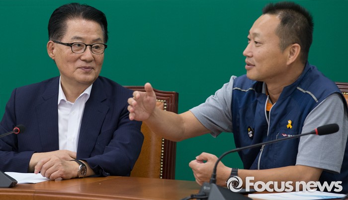 (서울=포커스뉴스) 박지원(왼쪽) 국민의당 비상대책위원장이 8일 오후 서울 여의도 국회에서 김주업 전국공무원노조 위원장 등 관계자들과 면담을 하고 있다.