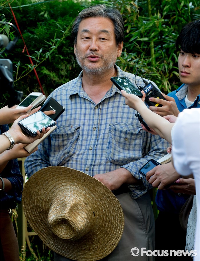 (서울=포커스뉴스) 전국 민생투어에 나섰던 김무성 새누리당 전 대표가 전당대회를 하루 앞둔 8일 오후 서울 여의도 자택으로 귀가하기 앞서 취재진과 만나 질문에 답하고 있다.