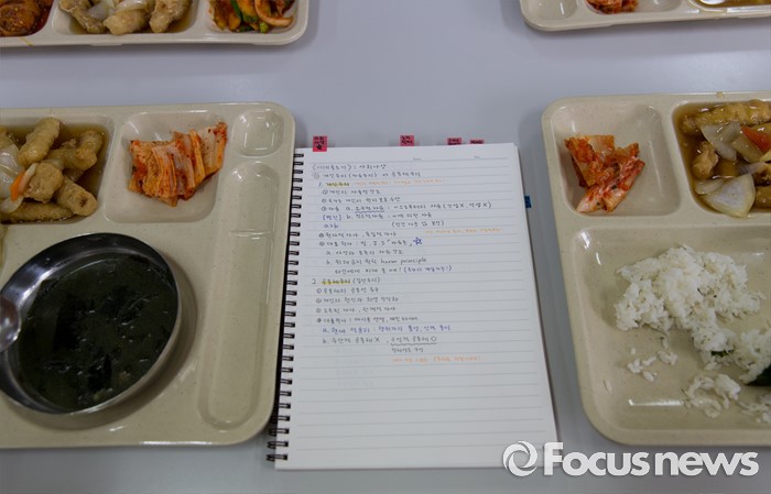 (안성=포커스뉴스) 2017학년도 대학수학능력시험을 101일 앞둔 8일 오후 경기도 안성종로기숙학원에서 재수생들이 석식을 먹으며 복습하고 있다.