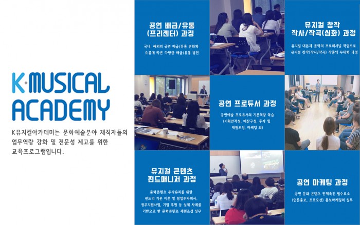 8월말부터 시작되는 'K뮤지컬아카데미' 3차 교육과정은 '뮤지컬 콘텐츠 펀드매니저 과정'과 '공연 무대조명·음향·기술과정'을 새롭게 운영한다.