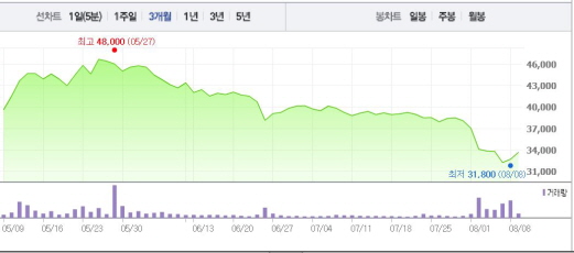 YG엔터는 9일 오전 9시39분 현재 전거래일 대비 2.91%(950원) 상승한 3만3650원에 거래되고 있다. YG엔터는 7월29일부터 이달 5일까지 1~8%의 낙폭을 기록했지만 8일 1.40%의 상승폭을 나타냈다.