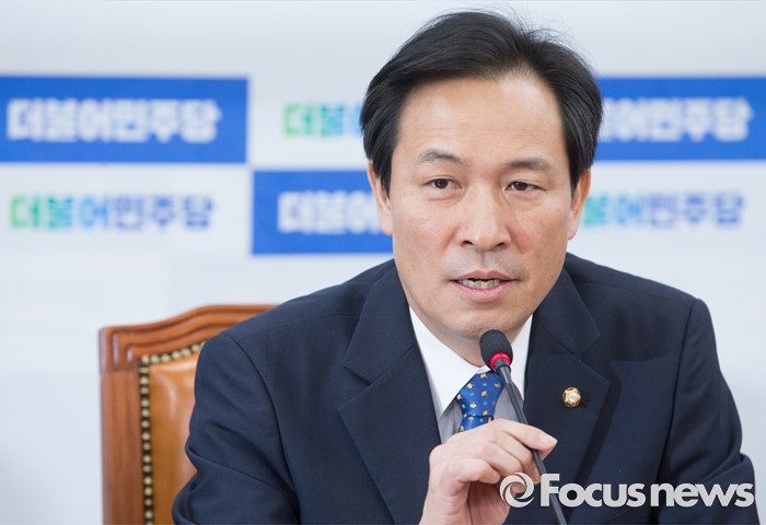 (서울=포커스뉴스) 9일 오전 서울 여의도 국회에서 열린 더불어민주당 원내대책회의에 참석한 우상호 원내대표가 모두발언을 하고 있다.